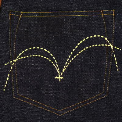 もちろんリベットは省略されており、ポケットの口を裏には武士道セルビッチをあしらっている。