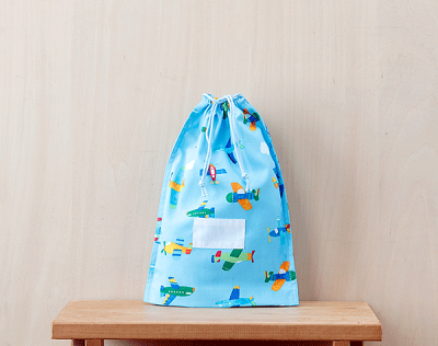 縦27cm 横19cm まち4cm 綿100% 氏名票(名札)が最初から縫い付けてありますので、あとはお子様の名前を書き入れるれるだけ。