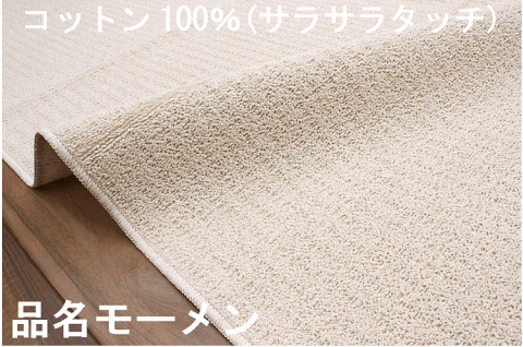 カーペット 6畳 コットン ラグ じゅうたん 絨毯 綿 国産 天然素材 白 アイボリー シンプル 平織り 折り畳み式 品名 モーメン&オーガニー 江戸間 6畳 261×352cm
