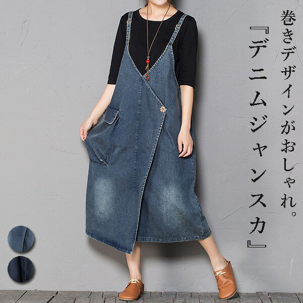 ワンピース デニムワンピ Vネック サロペット オールインワン ジャンパースカート レディース 【Mサイズ】 丈94cm身幅52cm 【Lサイズ】 丈95cm身幅53cm 【素材】 コットン/ポリエステル 【伸縮性】なし 【透け感】なし深いV開きが大人っぽいデニムワンピ♪
