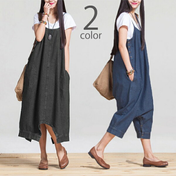 生産国 : 中国 カラー : 01.BLACK, 02.BLUE サイズ(cm) 肩幅 身幅 総丈 股下(サロペット) 裾幅(サロペット) 裾幅(スカート) S 24.5 52.5 114.5 23.5 21.5 68.5 M 25 54 115 24 21.5 69.5 L 25.5 55 116 24.5 22 70.5 XL 26 56.5 116.5 25 22 71.5 2XL 27 58 117.5 26 22.5 72 ※平置きにて採寸しております。
