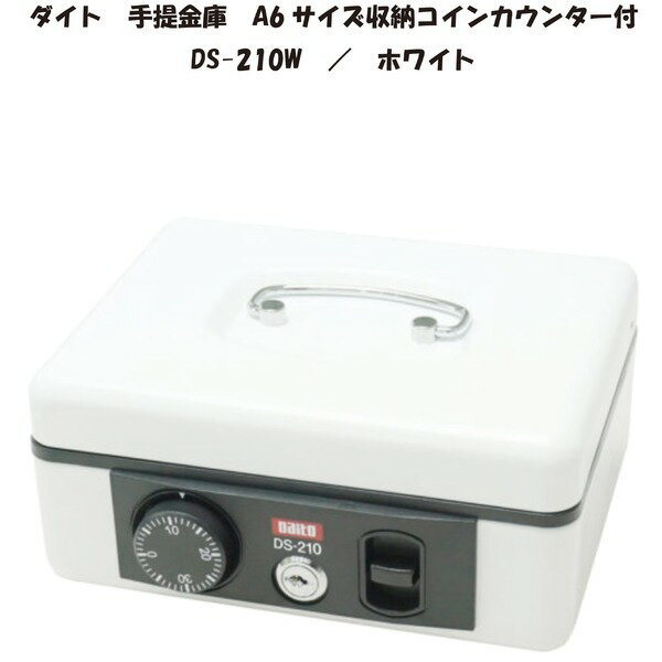 ・多目的収納スペースコイントレーの下に紙幣、小物、棒金などが収納可能・簡単便利なワンタッチオープン・安心のダブルロック式■商品スペック【商品名】手提金庫 A6サイズ収納 ホワイト【品番】DS-210W【サイズ】外寸:197×154×86mm内寸:175×128×60mm【重量】1.1kg 【材質】スチール、ABS樹脂・ポリウレタン(スポンジ)【錠仕様】鍵錠、ダイヤル錠【付属品】鍵2個【生産国】台湾【特記事項】・手提金庫は一時的な保管庫としてご使用下さい。